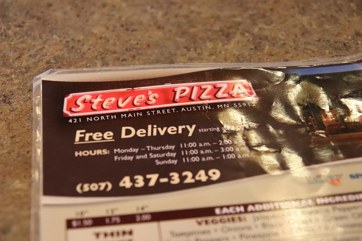 Welcome to Steve's Pizza - Austin, a hidden gem located at 421 Main St N, Austin, MN. This cozy eatery is the perfect spot to refuel after exploring the nearby Spam Museum or simply enjoy a delicious meal. The menu boasts a delightful range of offerings, from their famous Mama Mia pizza adorned with craveable toppings like green olives to a crispy thin-crust Greek Pizza. Customers rave about the generous portions and fresh ingredients, making each bite memorable.